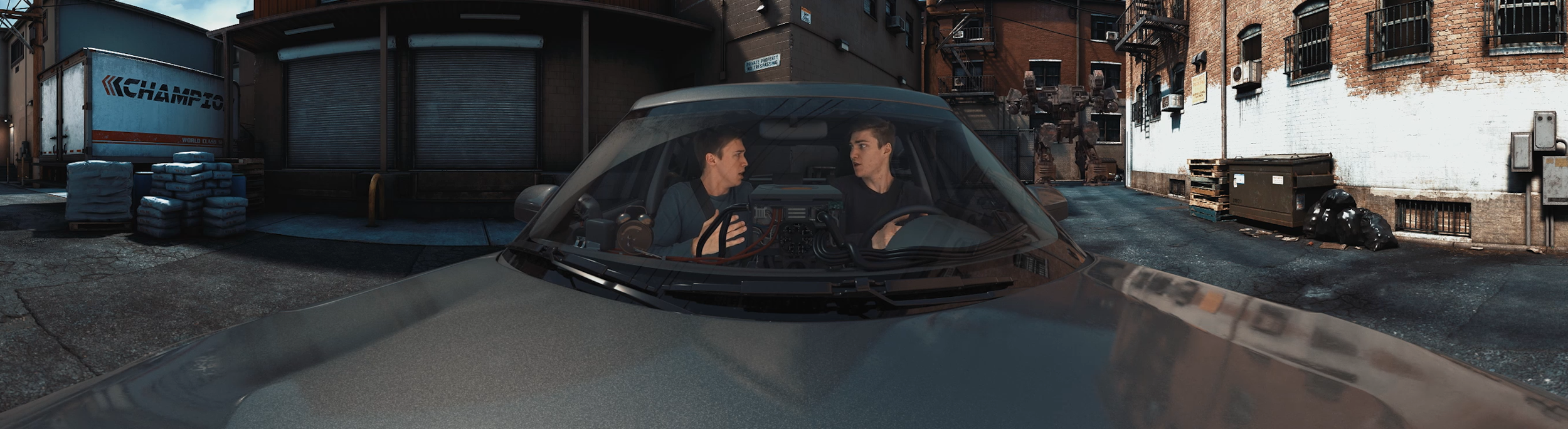 This experience takes the traditional "two-shot" passenger and driver shot to the next level. In this experience, you'll follow Eric and Sam as they race through various video games. Experience all the mayhem unfold as you view their adventure while planted on the hood of their car!